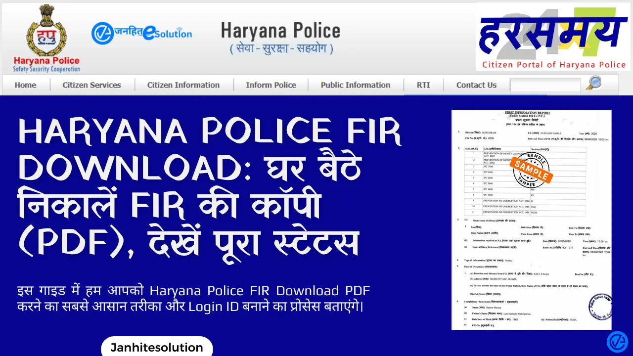 इस गाइड में हम आपको Haryana Police FIR Download PDF करने का सबसे आसान तरीका और Login ID बनाने का प्रोसेस बताएंगे।
