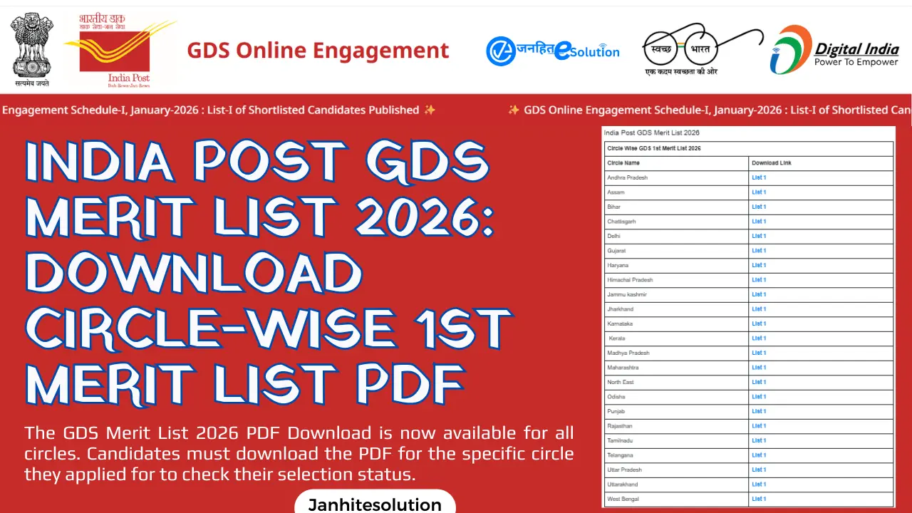 GDS 1st Merit List 2026 PDF Download: Circle-Wise Links