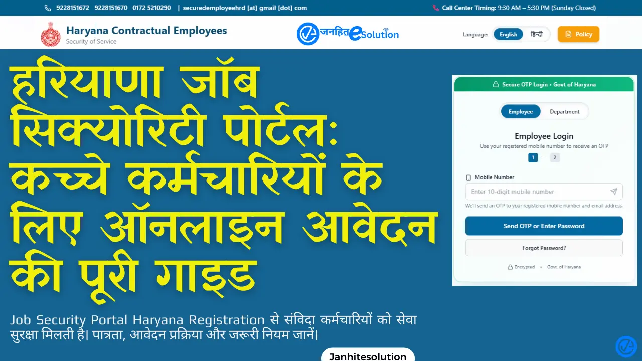 हरियाणा जॉब सिक्योरिटी पोर्टल एक क्रांतिकारी कदम है जो राज्य के अनुबंधित कर्मचारियों को नौकरी की सुरक्षा की गारंटी देता है। इस पोर्टल के माध्यम से सरकार प्रत्येक कच्चे कर्मचारी का एक डिजिटल प्रोफाइल तैयार कर रही है। Job Security Portal Haryana का उपयोग करके कर्मचारी अपनी सेवा का पूरा विवरण, वेतन वृद्धि और अनुबंध की स्थिति देख सकते हैं। यह पोर्टल विशेष रूप से उन लोगों के लिए है जो वर्षों से विभागों में अपनी सेवाएं दे रहे हैं और अपनी भविष्य की सुरक्षा को लेकर चिंतित थे।