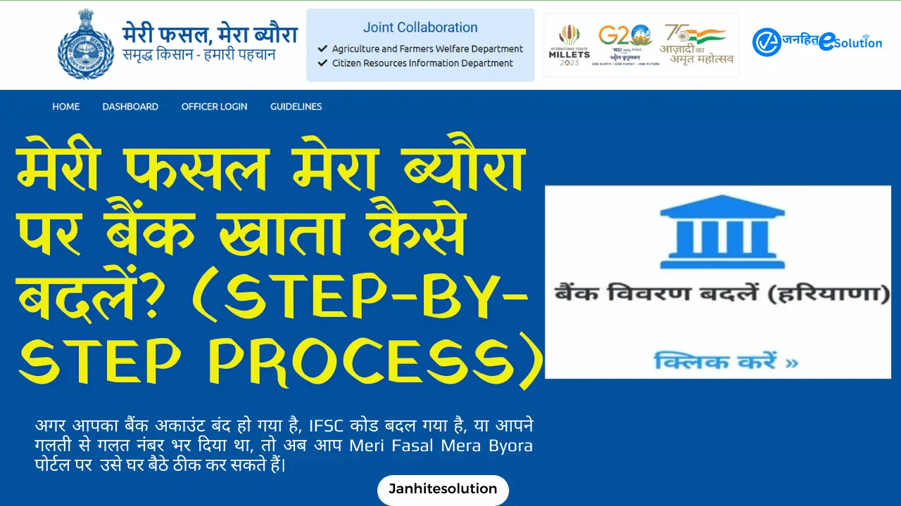 आज के इस आर्टिकल में, Janhit e-Solution गाइड में हम आपको बताएँगे कि आप मोबाइल से ही अपना बैंक खाता कैसे बदल सकते हैं ताकि आपकी फसल का पैसा सीधे आपके खाते में आए।
